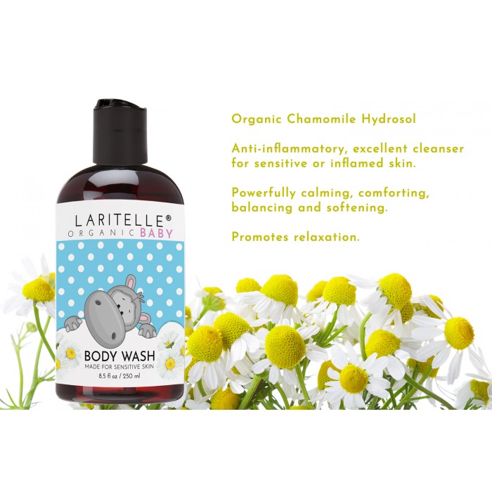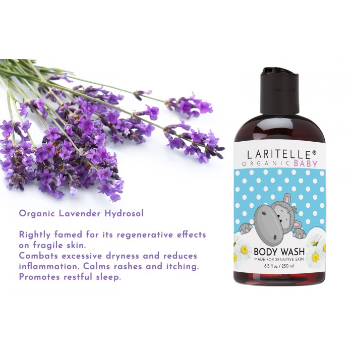 ✿ ORGANIC BODY WASH FORMULATED FOR SENSITIVE SKIN. Made with 100% pure therapeutic grade certified organic hydrosols of Chamomile and Lavender. EXTRA KIND & GENTLE to skin. Unscented. Hypoallergenic.