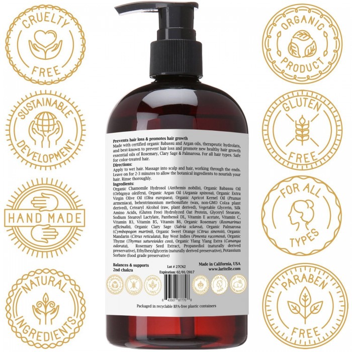 - ORGANIC HAIR CONDITIONER TO PREVENT HAIR LOSS & PROMOTE NEW HEALTHY HAIR GROWTH. Softens hair, nourishes the hair-shaft, rejuvenates hair follicles. Made with certified organic Argan & Babassu Oils, therapeutic hydrolats, and best known to prevent hair loss and promote new healthy hair growth essential oils of Rosemary, Clary Sage & Palmarosa.