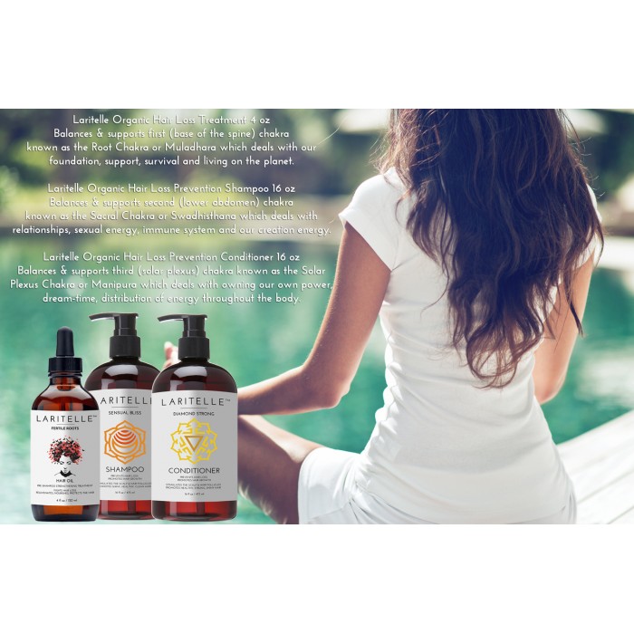 Laritelle Organic Hair Loss Prevention Conditioner (Diamond Strong) - 16 oz Balances & supports third (solar plexus) chakra also known as the Solar Plexus Chakra or Manipura and deals with owning our own power, dream-time, distribution of energy throughout the body.