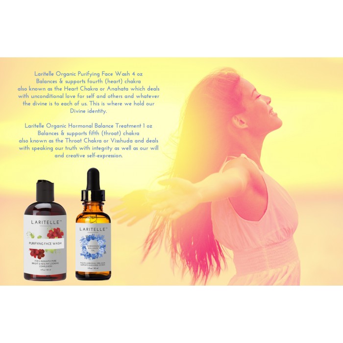 Laritelle Organic Purifying Face Wash - 4 oz Balances & supports fourth (heart) chakra also known as the Heart Chakra or Anahata and deals with unconditional love for self and others and whatever the divine is to each of us. This is where we hold our Divine identity.
