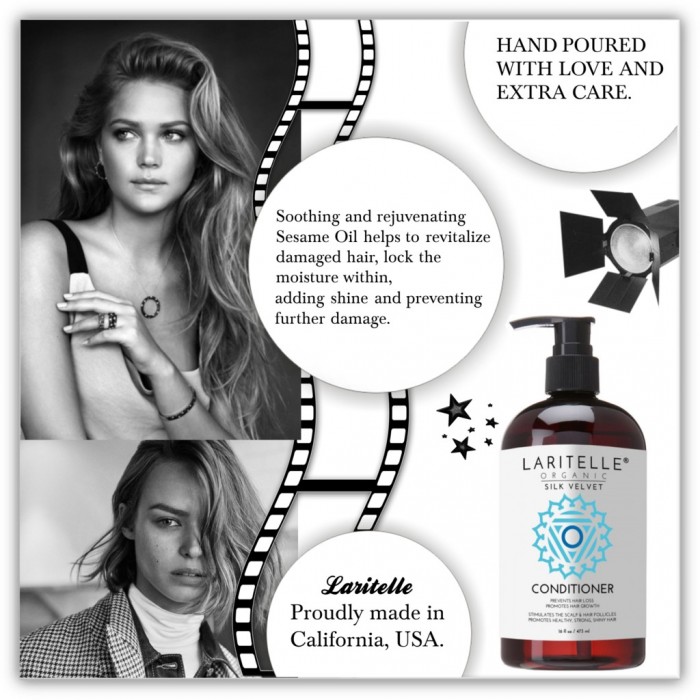 Laritelle Organic Hair Care Set Silk Velvet: Shampoo 17.5 oz + Conditioner 16 oz + Bonus Post-Shampoo Hair Strengthening Treatment